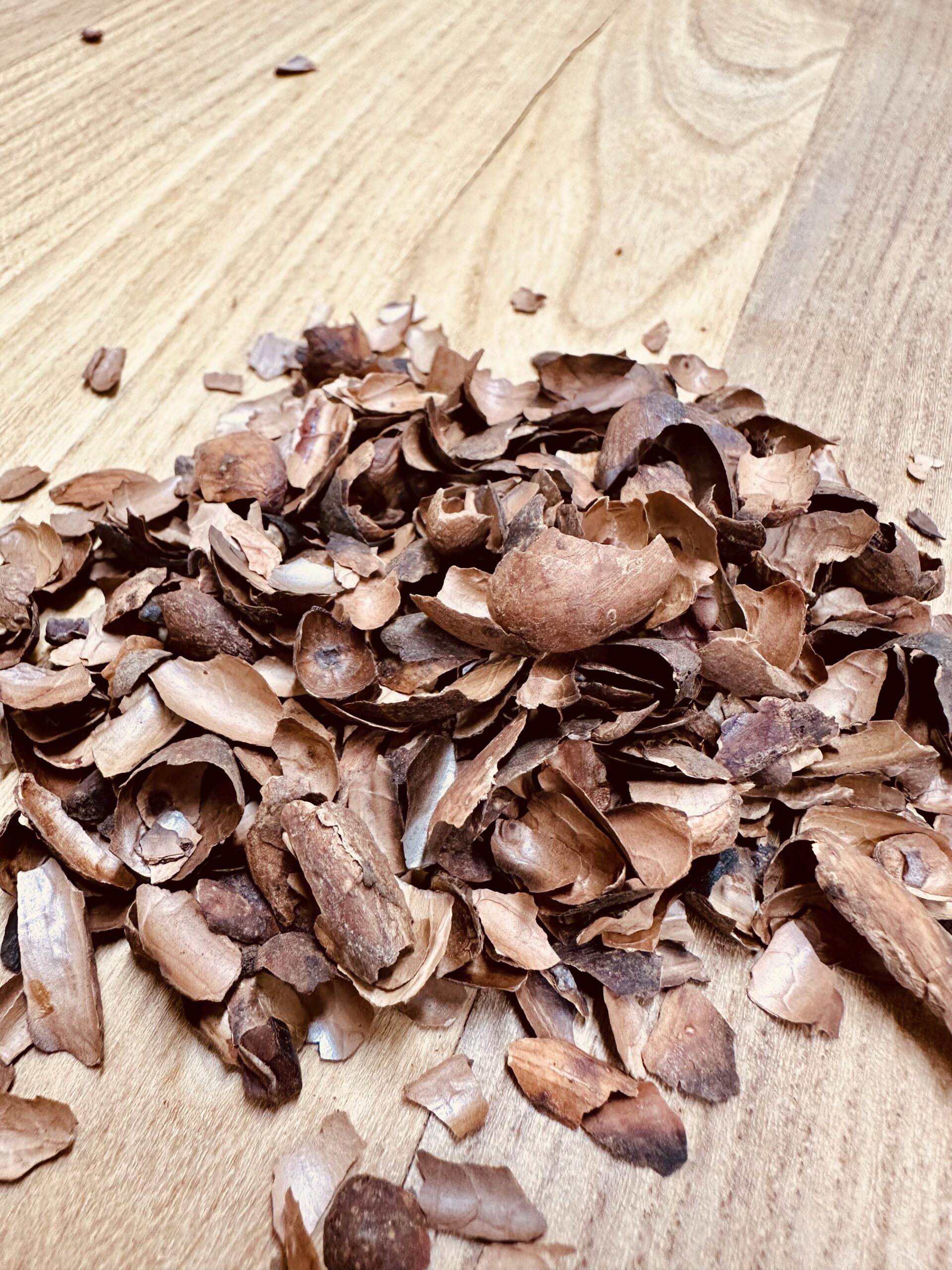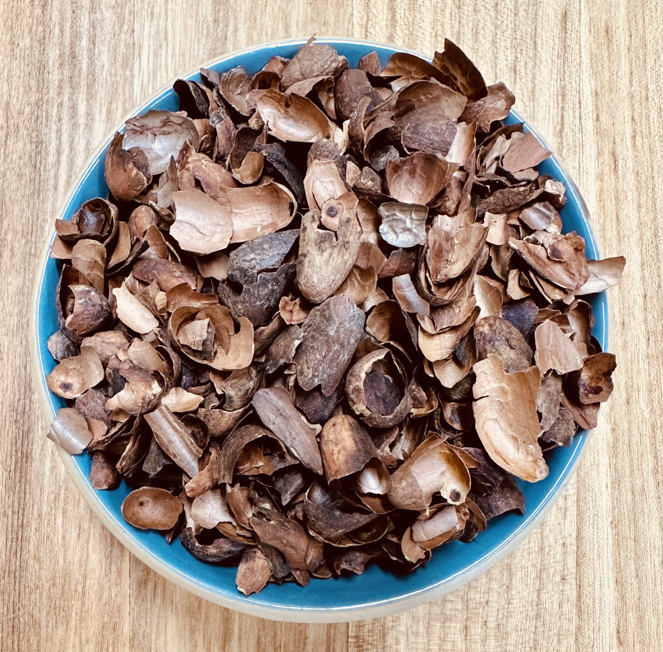 Die feine Schale der Kakaobohne trägt die Essenz der Kakaopflanze in sich – sanft, erdend und herzöffnend. Als Tee aufgegossen, entfaltet sie ein mild-schokoladiges Aroma mit einer feinen, natürlichen Süsse. Kakaoschalentee ist reich an Antioxidantien und Theobromin, das sanft belebend wirkt.